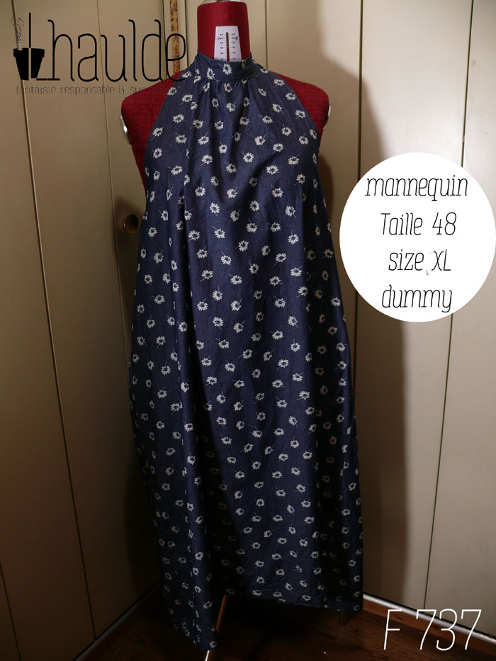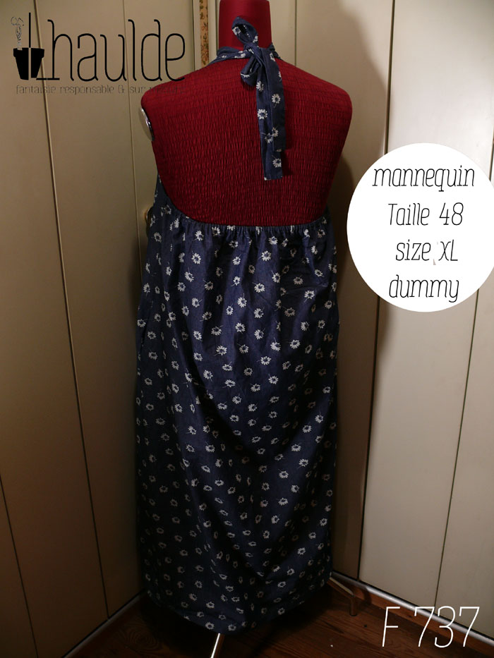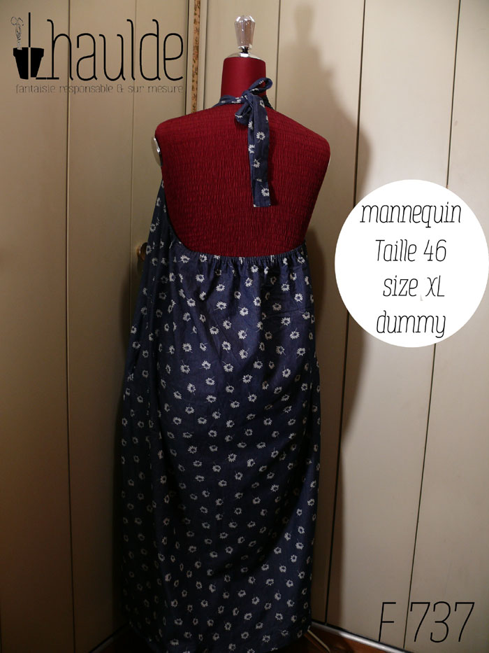 Long backless dress, tied at the neck, with two pockets size XL-XXL